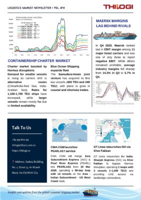 • Maersk Performance: Maersk ranked at the bottom of 11 major listed carriers, recording a negative EBIT in Q4/2025.