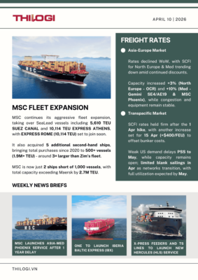 • Freight Rates: Asia-Europe routes showed mixed trends (with some carriers increasing rates by 3-10%); US-bound routes are expected to rise by $400/FEU starting April 15 due to fuel surcharges.