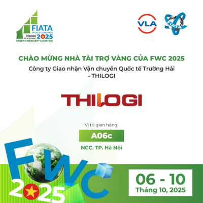 Từ ngày 6 đến ngày 10 tháng 10, Đại hội Thế giới Liên đoàn các Hiệp hội Giao nhận và Vận tải Quốc tế – FIATA World Congress 2025 (FWC 2025) sẽ diễn ra tại Hà Nội với chủ đề “Logistics xanh, thích ứng nhanh”. Đây là sự kiện thường niên lớn nhất của ngành logistics toàn cầu, Hiệp hội Doanh nghiệp Dịch vụ Logistics Việt Nam (VLA) vinh dự là đại diện nước chủ nhà đăng cai tổ chức vào dịp kỷ niệm đặc biệt 99 năm thành lập FIATA. Công ty Giao nhận Vận chuyển Quốc tế Trường Hải (THILOGI) đồng hành cùng sự kiện với vai trò Nhà tài trợ Vàng.